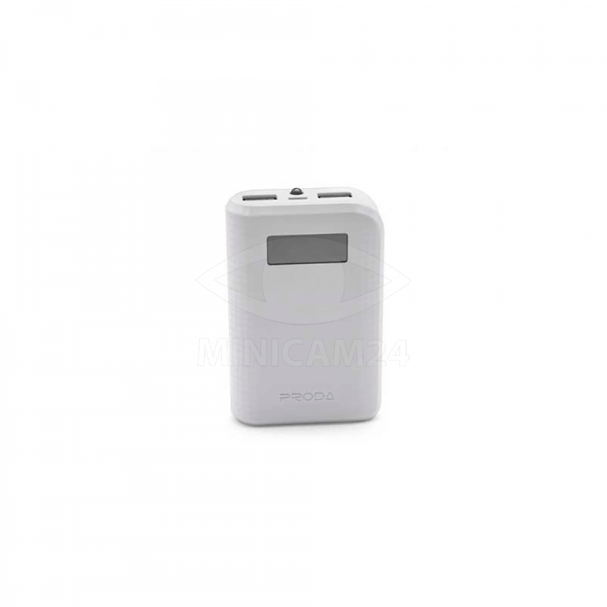 Портативный аккумулятор емкостью 10000 мАч. Выполнен в пластиковом корпусе белого цвета, оснащен цифровым индикатором уровня заряда и встроенным фонариком. Предусмотрено два выхода USB 5 В, 2.1 А.